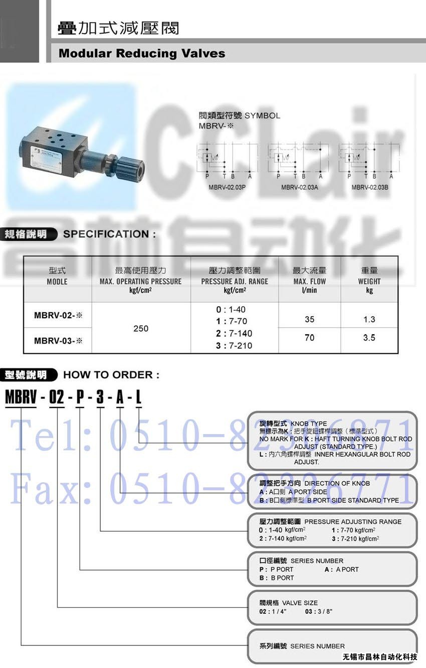 MBRV-03-A-1-B-K,MBRV-03-A-1-B-L,疊加式減壓閥
