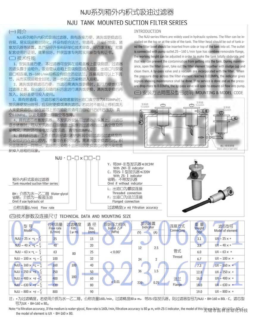 UX-63×80,UX-63×100,UX-63×180,UX-100×80,UX-100×100,UX-100×180,濾芯,箱外內(nèi)積式吸油過(guò)濾器
