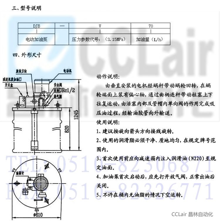 適用于干油集中潤滑系統(tǒng)中,向電動潤滑泵的貯油器內(nèi)充填潤滑脂。該泵為不帶貯油桶型,直接放在200L的油桶上,可以單獨操作,與相應的電控裝置連接可以實現(xiàn)電動潤滑系統(tǒng)的自動補脂。該泵為內(nèi)藏式柱塞容積泵,采用蝸輪蝸桿減速傳動,運轉平穩(wěn),輸出壓力高,出口處設置調壓安全閥具有過載保護作用。