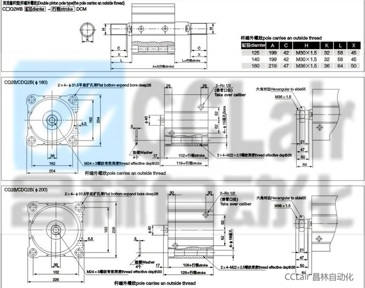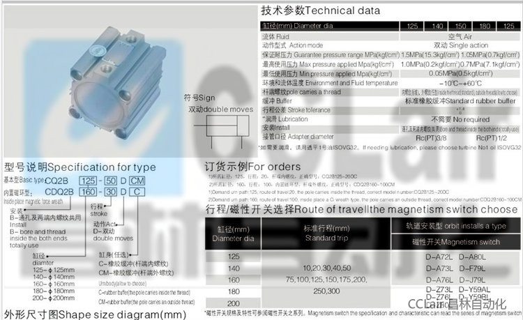 CQ2B180-125,CQ2B180-150,CQ2B180-175,CQ2B180-200,CQ2B180-250,