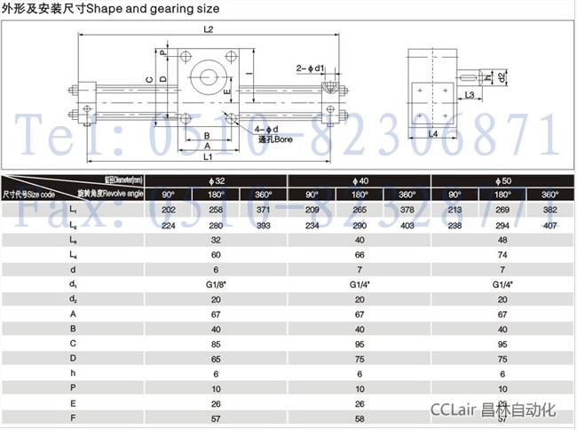 QJKa50*90°,QJKa50*180°,QJKa50*360°,齒輪齒條擺動氣缸(軸式)