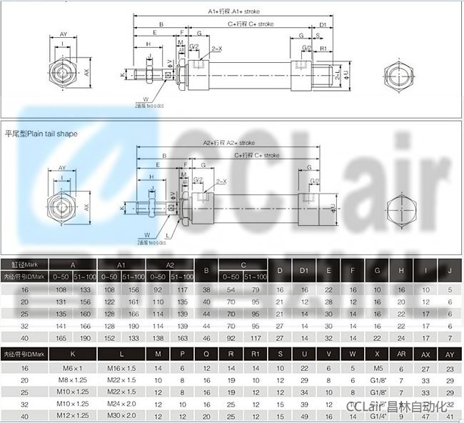 MSAL-CA25-350,MSAL-CA25-400,MSAL-CA25-450,MSAL-CA25-800,MSAL-CA25-1200,鋁合金迷你型氣缸