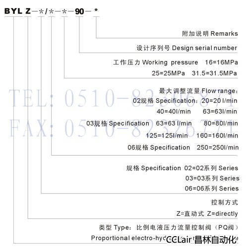 BYLZ-02,BYLZ-03,BYLZ-06,比例電液壓力流量控制閥,生產(chǎn)廠家,價(jià)格 本閥是用兩路電信號(hào)分別控制液壓系統(tǒng)的壓力和流量的比例閥;本閥以很小的壓差追蹤負(fù)載壓力,控制泵壓力,是一種節(jié)能型閥。 型號(hào)說(shuō)明: