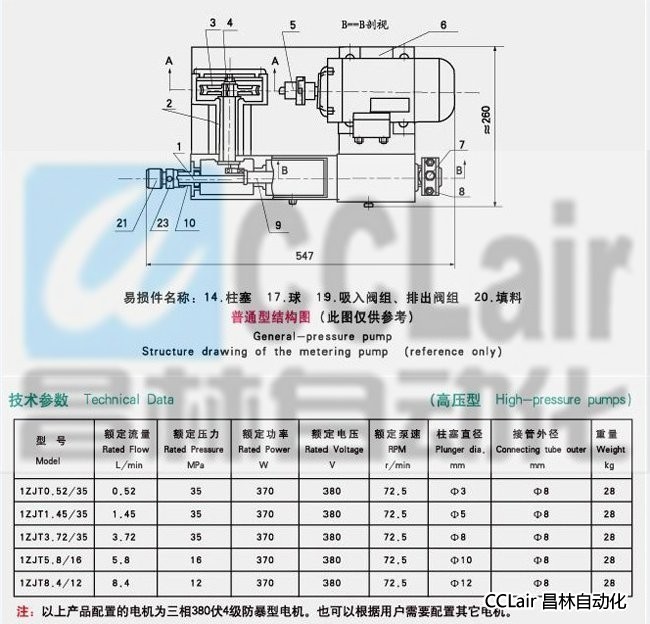 1ZJT0.55/16,1ZJT1.54/12,1ZJT3.94/8,1ZJT6/6,1ZJT9/4,1ZJT14.6/2,柱塞計量泵