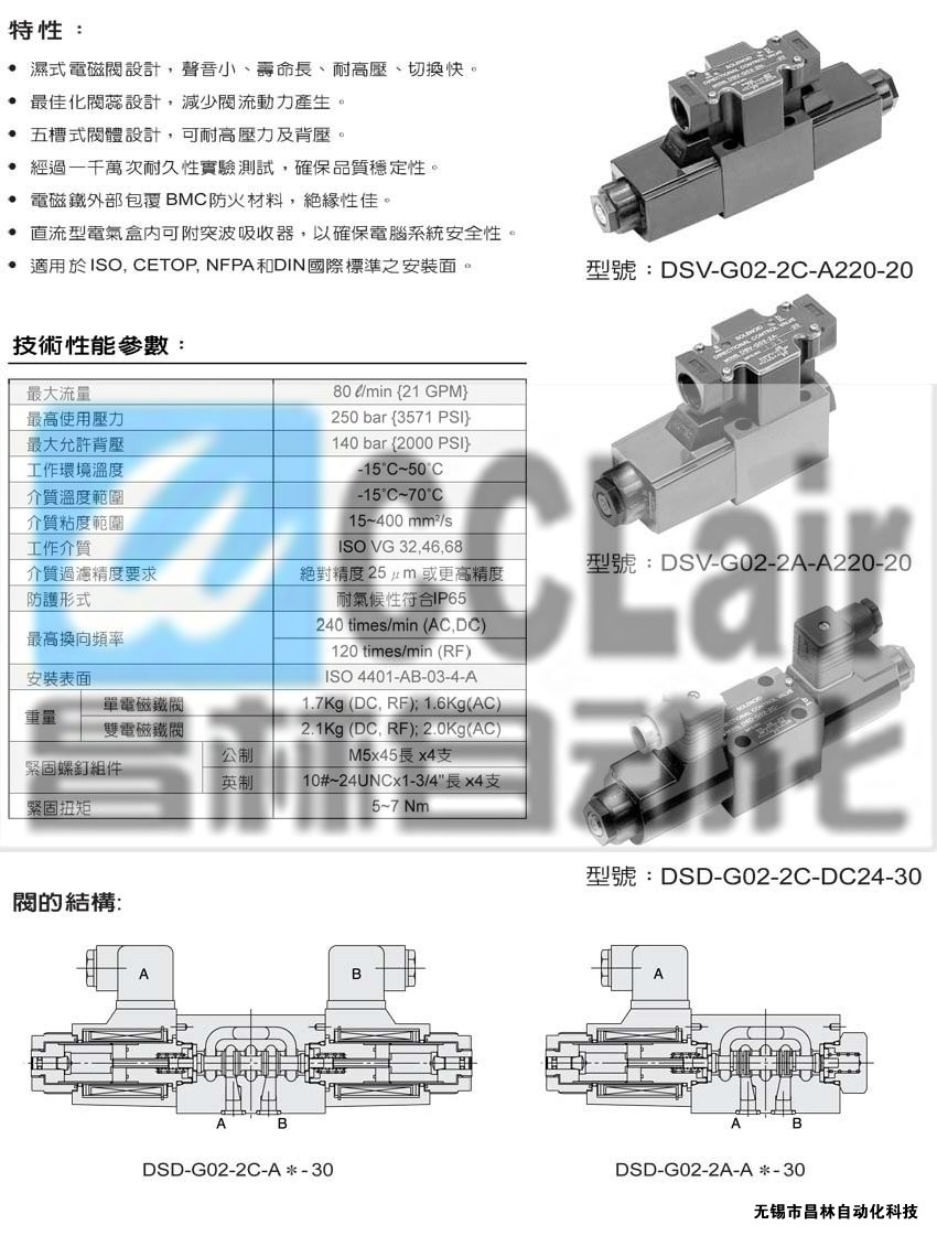 DSV-GO2-6AL,DSV-GO2-7AL,DSV-GO2-8AL,DSV-GO2-11AL,DSV-GO2-22AL,濕式電磁鐵操作換向閥