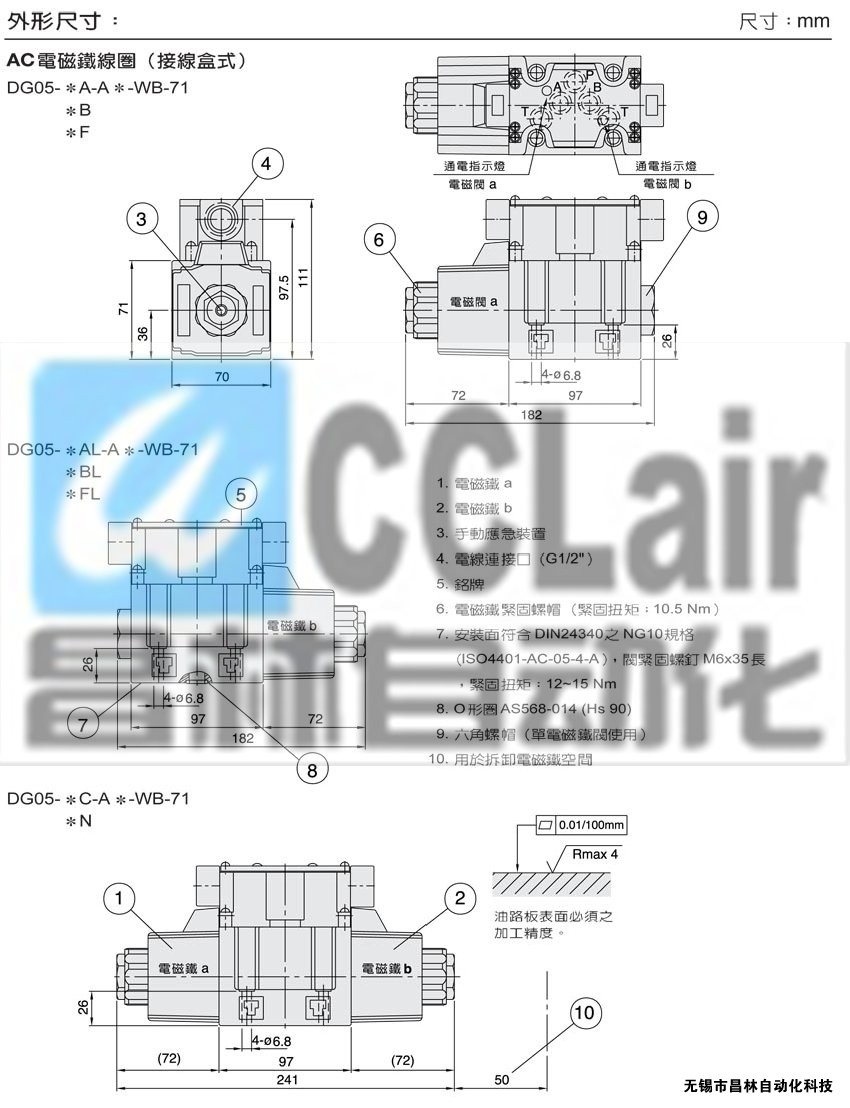 DG05-8A,DG05-11A,DG05-22A,DG05-31A,DG05-33A,DG05-0AL,DG05-1AL,濕式電磁鐵操作換向閥