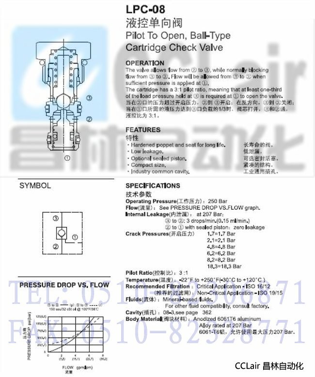 LPC-08-NS-1.7,LPC-08-NS-2.1,LPC-08-NS-4.8,LPC-08-NS-6.2,液控單向閥,