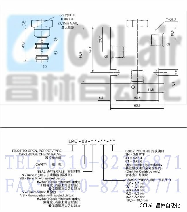 LPC-08-V-8.2,LPC-08-V-18.3,LPC-08-VS-8.2,LPC-08-VS-18.3,液控單向閥,