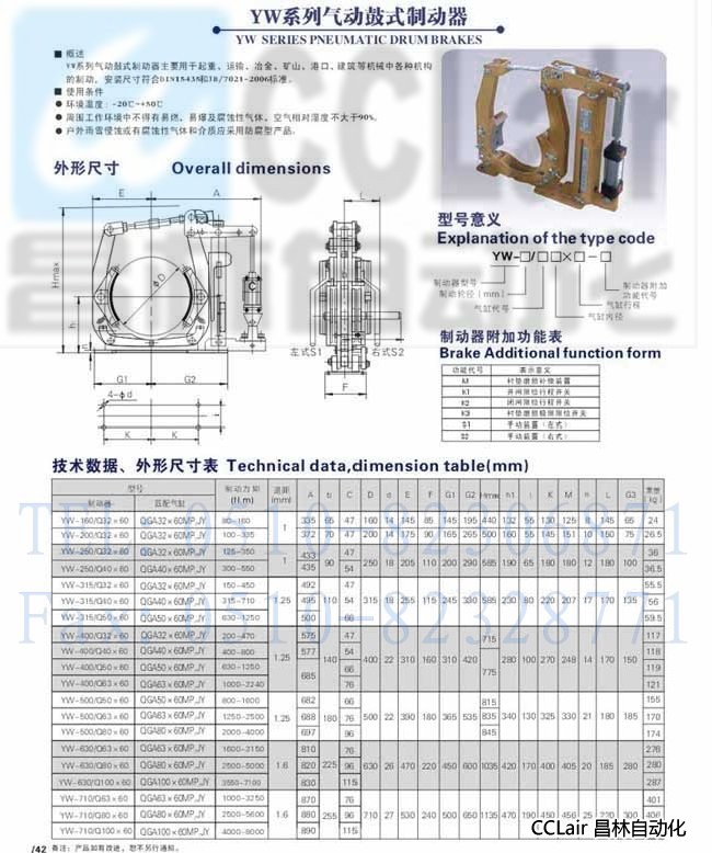 YW-500/Q63×60,YW-500/Q80×60,YW-630/Q63×60,氣動鼓式制動器