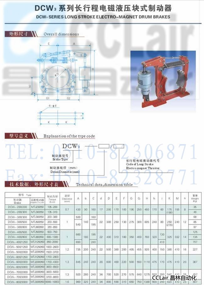 DCW3-400/800,DCW3-400/1250,DCW3-500/1250,長(zhǎng)行程電磁液壓塊式制動(dòng)器