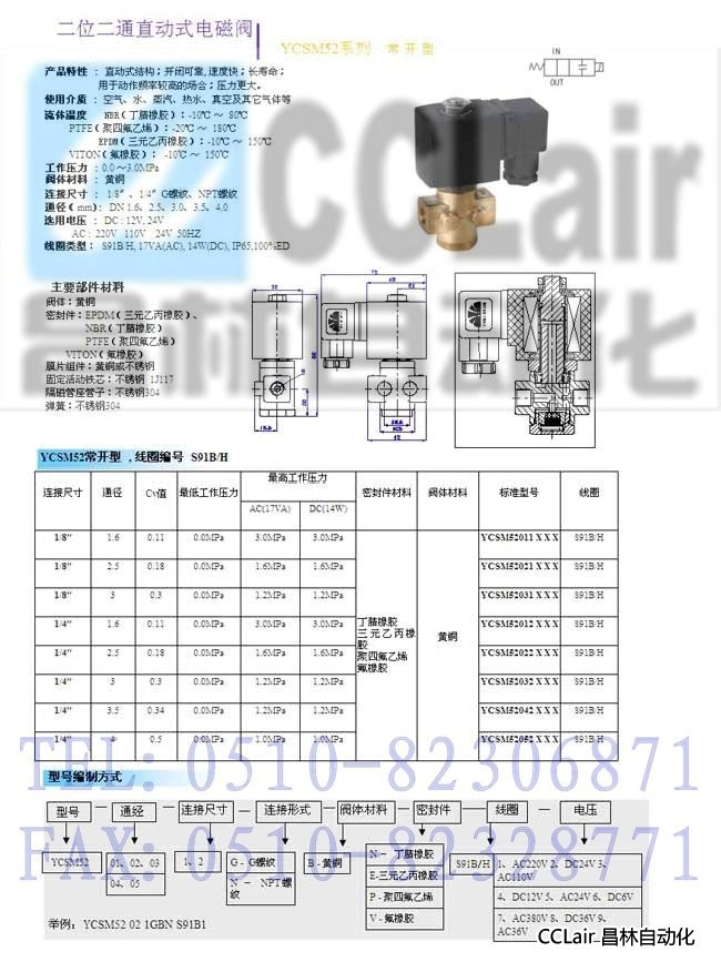 YCSM52032,YCSM52041,YCSM52042,YCSM52051,YCSM52052,二位二通直動(dòng)式電磁閥,價(jià)格