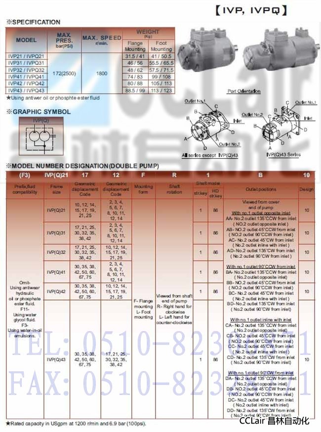 IVPQ21,IVPQ231,IVPQ32,IVPQ41,IVPQ42,IVPQ43,子母葉片固定容量泵浦,