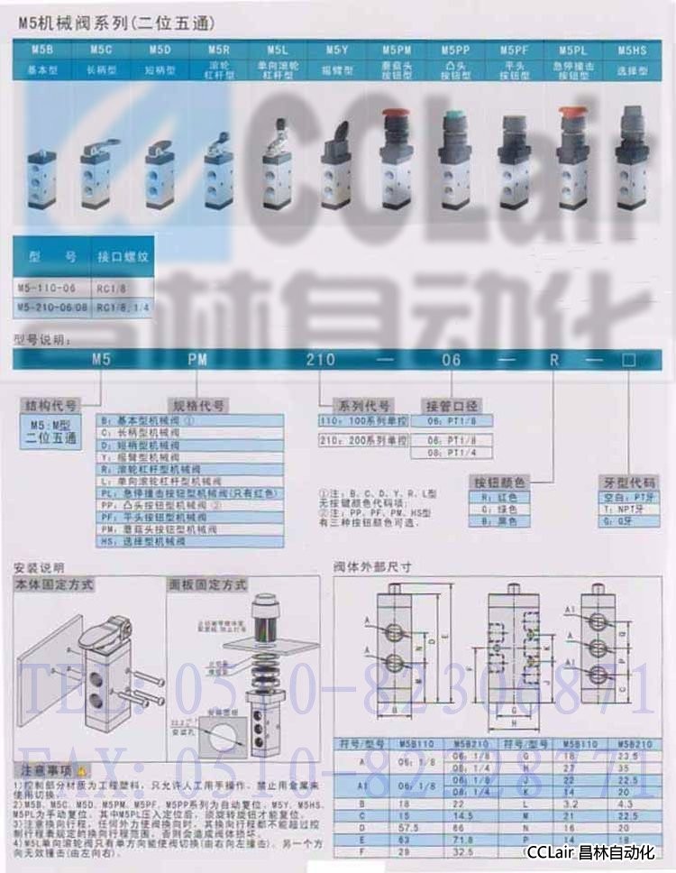 M5B210-06,M5C210-06,M5D210-06,M5Y210-06,M5R210-06,二位五通機械閥