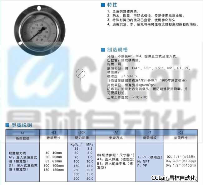 AT-63,AT-100,DT-63,DT-100,耐震壓力表