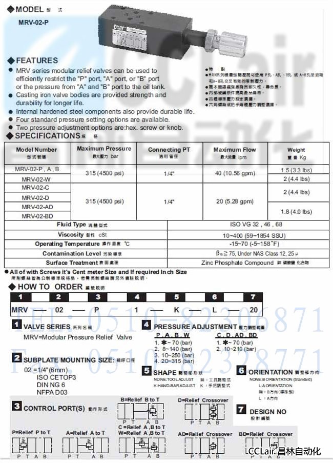 MRV-02-P,MRV-02-A,MRV-02-B,MRV-02-W,積層型溢流閥,