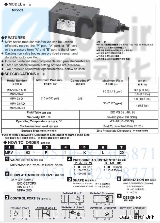 MRV-03-C,MRV-03-D,MRV-03-AD,MRV-03-BD,積層型溢流閥