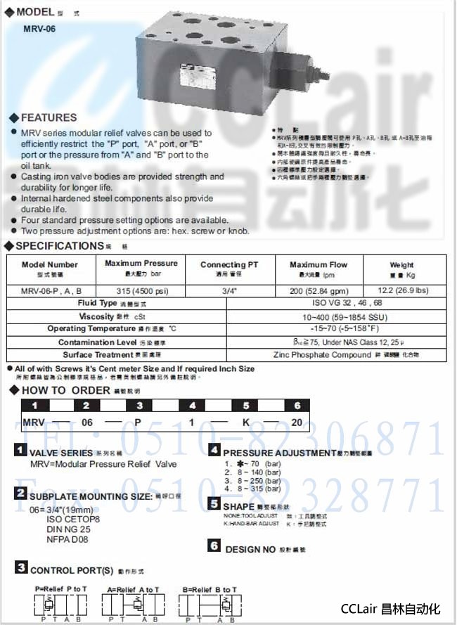 MRV-06-P,MRV-06-A,MRV-06B,積層型溢流閥