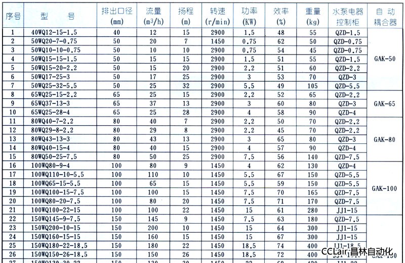 WQ型泵技術(shù)性能參數(shù)