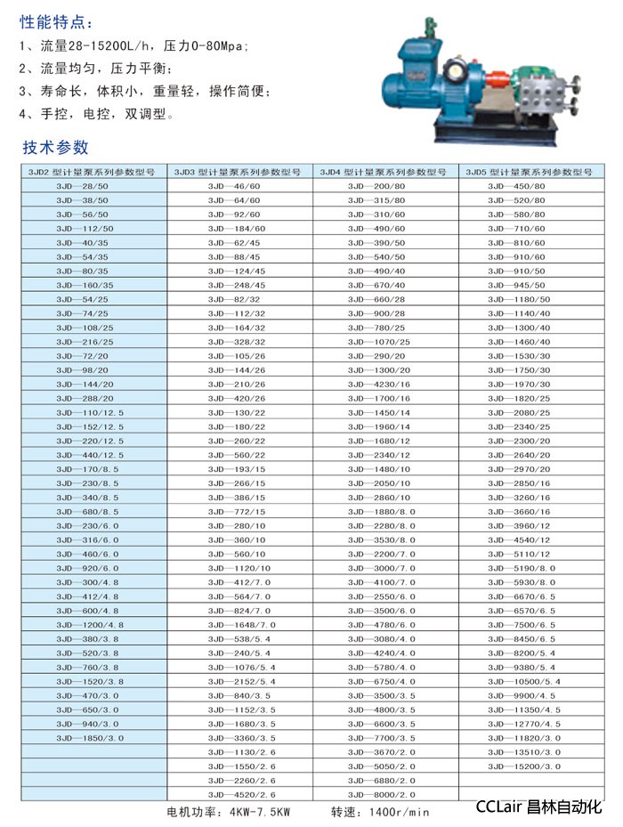 3JD-1520/3.8,3JD-2152/5.4,3JD-6750/4.0,3JD-10500/5.4,3JD-470/3.0,柱塞計量泵