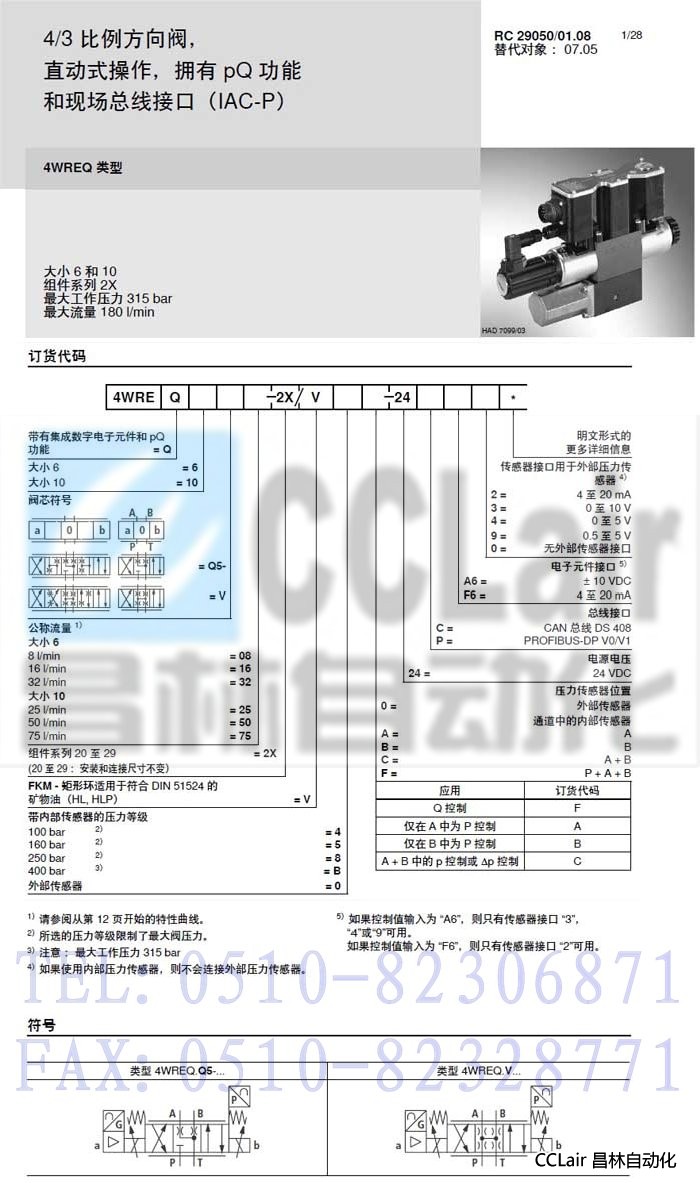 4WREQ6Q5-32-2X/V8C-24CA60,4WREQ6Q5-32-2X/V5A-24PF60,比例方向閥,力士樂(lè)REXROTH,德國(guó)力士樂(lè)