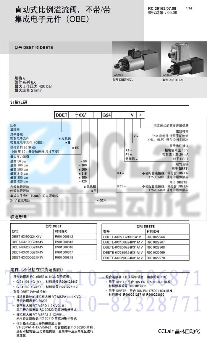 DBETE-6X/100YG24K31F1V,DBETE-6X/200G24K31A1V, 直動式比例溢流閥,力士樂REXROTH,德國力士樂