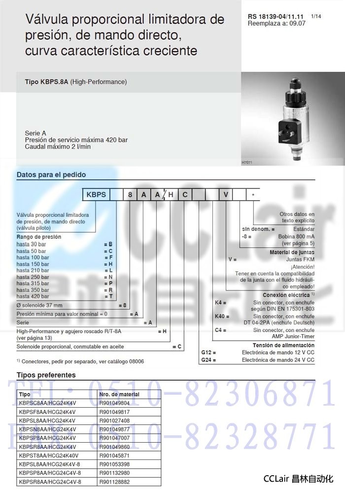 KBPSP8AA/HCG24C4V-8,KBPSR8AA/HCG24C4V-8,直動式比例溢流閥,力士樂REXROTH,德國力士樂