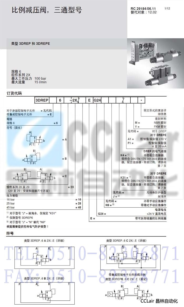 3DREPE6A-2X/45EG24K31/A1M,3DREPE6C-2X/16EG24K31/A1M,直動(dòng)式比例減壓閥,力士樂(lè)REXROTH,德國(guó)力士樂(lè)