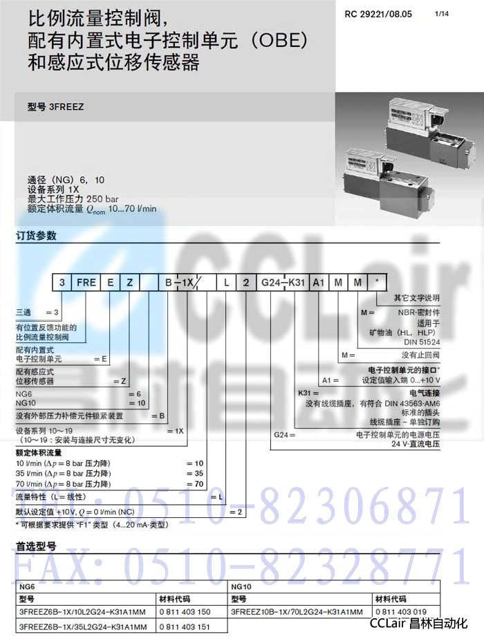 EEZ6B-1X/10L2G24-K31A1MM,比例流量控制閥,力士樂REXROTH,德國(guó)力士樂