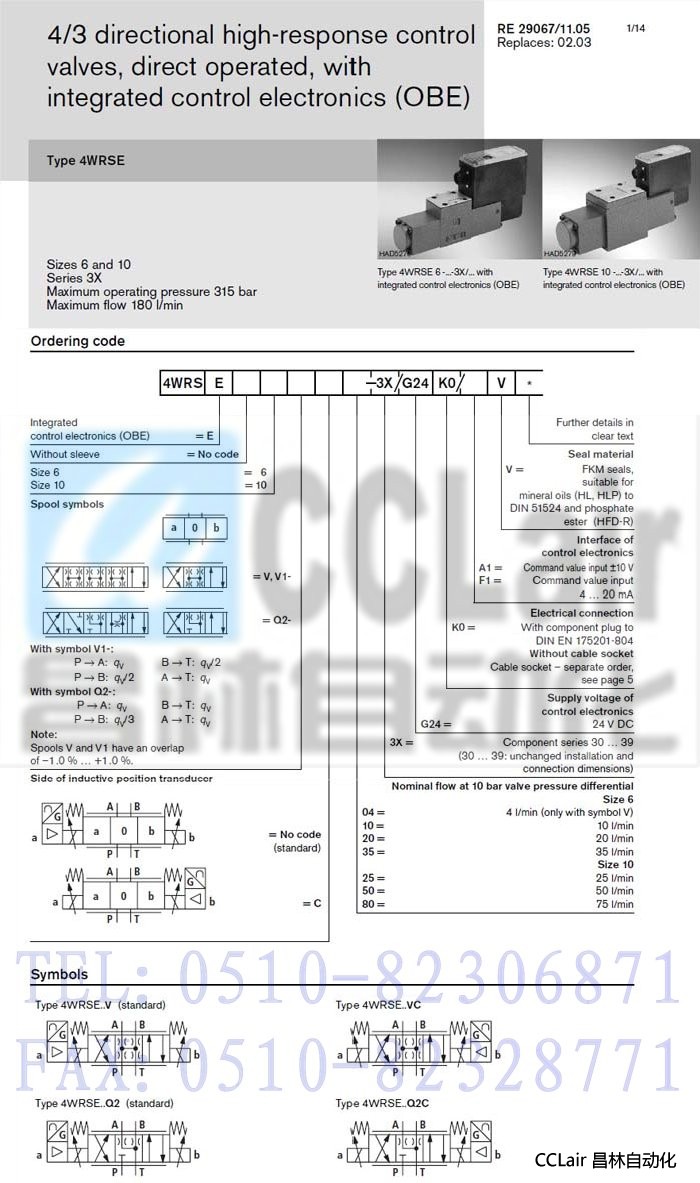 4WRSE10V1-50-3X/G24K0/A1V,4WRSE10V1-50-3X/G24K0/F1V, ,直動(dòng)式方向控制閥,力士樂(lè)REXROTH,德國(guó)力士樂(lè)