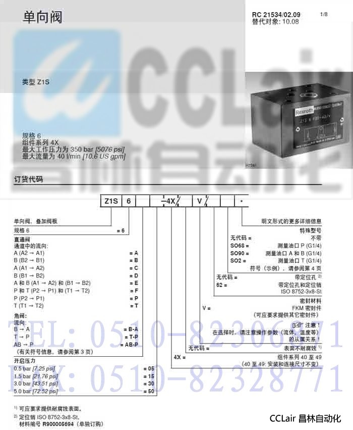 Z1S6B30-4X/V,Z1S6B50-4X/V,Z1S6C05-4X/V,Z1S6C05-4X/V/62,單向閥,力士樂(lè)REXROTH,德國(guó)力士樂(lè)