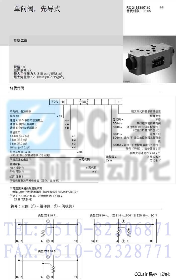 Z2S10A1-3X/,Z2S10A1-3X/V,Z2S10A2-3X/Z2S10A2-3X/V,單向閥,力士樂REXROTH,德國力士樂