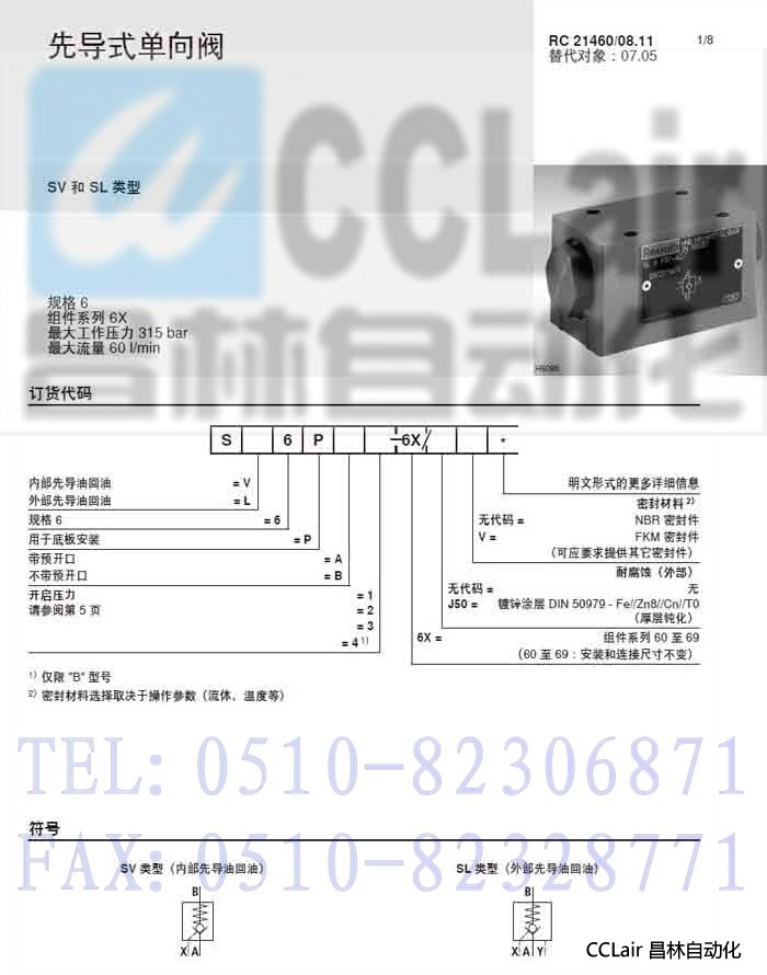 SL6PB2-6X/V,SL6PB3-6X/,SL6PB3-6X/V,SL6PB4-6X/,單向閥,力士樂REXROTH,德國力士樂