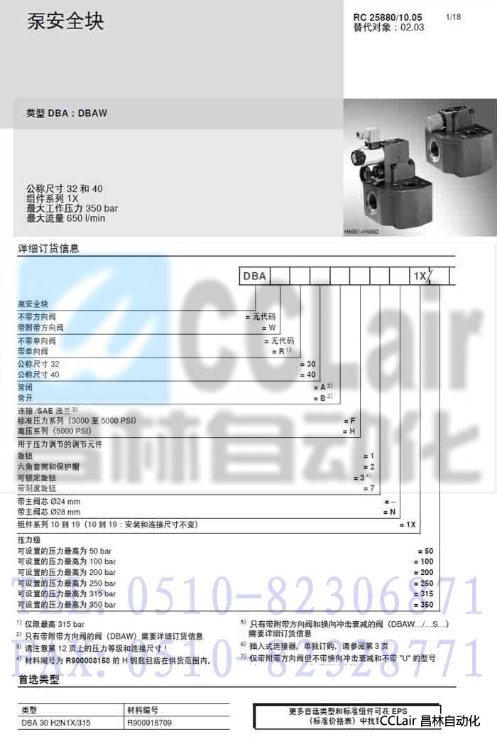 DBAWR40BF2N1X/50Y6EG24NK4,DBAWR40BH2N1X/315US6EG24N9K4R12 ,先導(dǎo)式溢流閥,力士樂REXROTH,德國力士樂 |