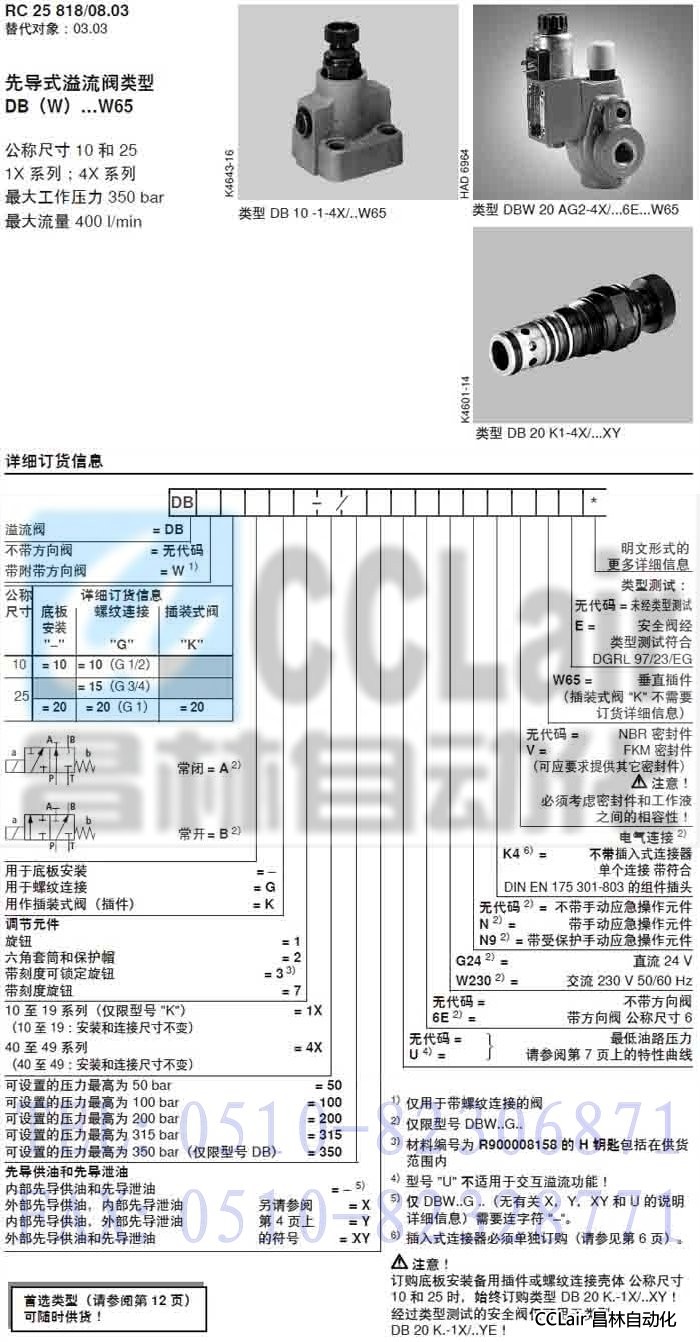 DB20K2-1X/200YE,DB20K2-1X/205YE,DB20K2-1X/220YE 先導式溢流閥,力士樂REXROTH,德國力士樂 |