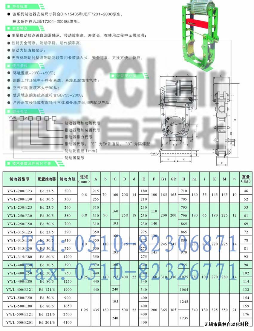 YWL-315/E23,YWL-315/E30,YWL-315/E50,YWL-315/E80液壓制動器