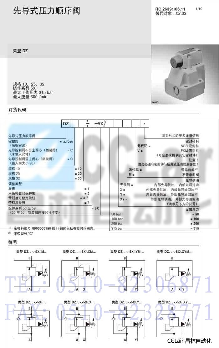 DZC30-3-5X/200XY,DZC30-3-5X/315XY,DZC30-7-5X/315V,先導(dǎo)式壓力順序閥,力士樂REXROTH,德國力士樂 |
