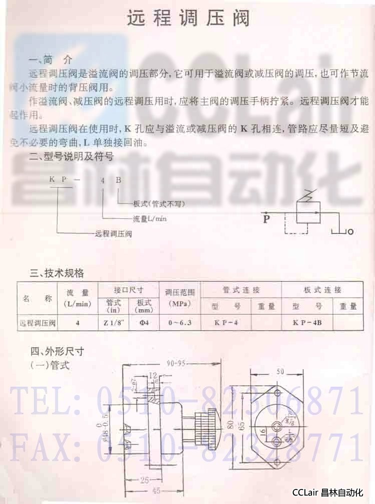 KP-4B,KP-4,遠(yuǎn)程調(diào)壓閥