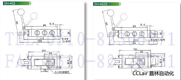 *SH-402和SH-403的外觀尺寸除了配管口徑分別為1/4PT、3/8PT以外,其他的都一 。