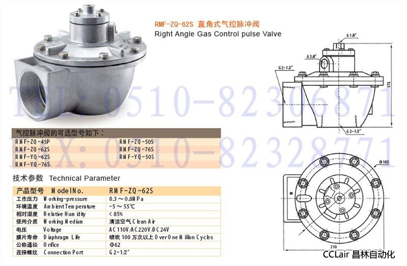 RMF-ZQ-62S,RMF-ZQ-45P,RMF-YQ-62S,RMF-YQ-76S,RMF-ZQ-50S,直角式氣控脈沖閥