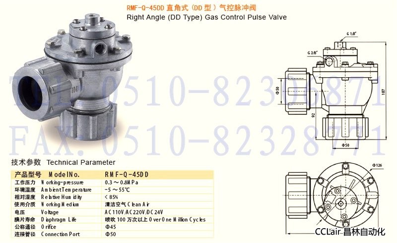 RMF-Q-45DD,直角式(DD型)氣控脈沖閥
