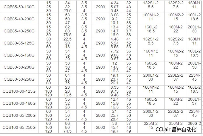 CQB65-40-250G,CQB80-65-125G,CQB80-65-160G,CQB80-50-200G,