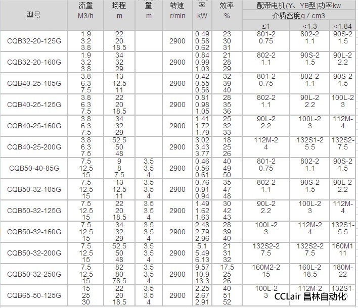 CQB50-32-250G,CQB65-50-125G,CQB65-50-160G,CQB65-40-200G,
