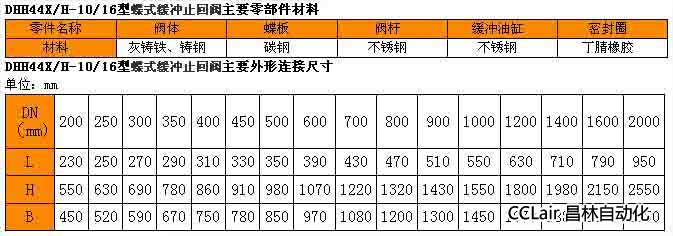DHH44X/H-10/16型蝶式緩沖止回閥主要技術(shù)參數(shù)
