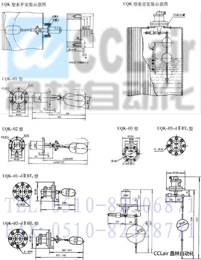1. UQK-01/02/03型浮球液位控制器采用非標(biāo)凸面法蘭與被控容器相連接,用戶在安裝時(shí)應(yīng)配置相應(yīng)的下法蘭(凸緣) 2. UQK-01/02型控制器為水平方向安裝, UQK-03型為垂直方向安裝 .3. UQK-02型控制器的動(dòng)作范圍的整定屬有級(jí)調(diào)整,最大動(dòng)作范圍為550mm。 4. UQK-03型控制器在安裝時(shí),因其浮球直徑大于法蘭孔直徑,故容器蓋應(yīng)為可拆裝。 UQK-02型的動(dòng)作范圍的整定屬無(wú)級(jí)調(diào)整,最大動(dòng)作范圍為1000mm。 5. 控制器是非防水型結(jié)構(gòu),不宜在室外露天場(chǎng)合使用。 6. 控制器在安裝時(shí)應(yīng)使金屬外殼可靠接地(一般可連在法蘭上),以確保用電安全。 7. 被控介質(zhì)不應(yīng)含有導(dǎo)磁雜質(zhì),并且液面的波動(dòng)頻率不能太大。 8. 使用中的儀器應(yīng)定期進(jìn)行檢查 。