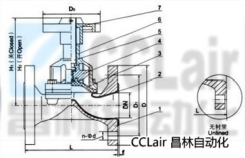 部件列表:1.閥體 2.閥體襯里 3.隔膜 4.閥瓣 5.閥桿 6.閥蓋 7.手輪