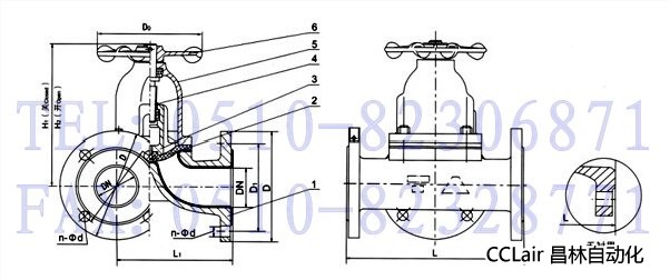 部件列表:1、閥體 2、隔膜 3、閥瓣 4、閥桿 5、閥蓋 6、手輪