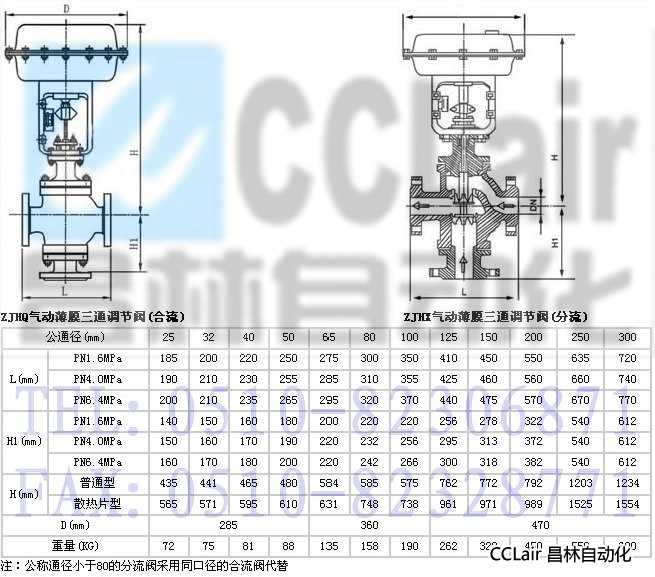 ZJHQ、ZJHX氣動薄膜三通調(diào)節(jié)閥采用圓筒型薄壁窗口形閥芯導(dǎo)向,不同于柱塞形閥芯的襯套導(dǎo)向。配用多彈簧執(zhí)行機(jī)構(gòu),具有結(jié)構(gòu)簡單、重量輕、體積小、拆裝方便等優(yōu)點(diǎn)。廣泛應(yīng)用于精確控制氣體、液體等介質(zhì)的工藝參加如壓力、流量、溫度、液位保持在給定值。適合于把一種流體通過三通閥分成二路流出或理把兩種流體經(jīng)三通閥合并成一種流體的場合。