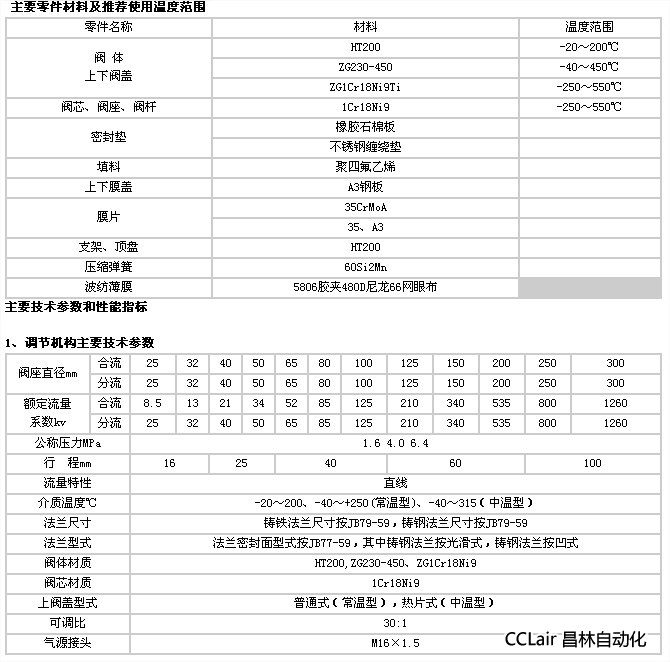 本系列產(chǎn)品有三通合流及三通分流兩種。公稱壓力有PN16、40、64;公稱通徑范圍DN25—300。適用流體溫度由-60℃至+450℃。泄漏量標(biāo)準(zhǔn)為Ⅳ級。流量特性有直線、拋物線兩種。