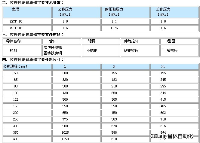 YSTF-10,YSTF-16,拉桿伸縮過濾器