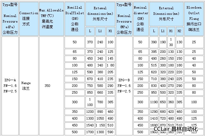 四、ZPG-A/B自動排渣過濾器技術參數表